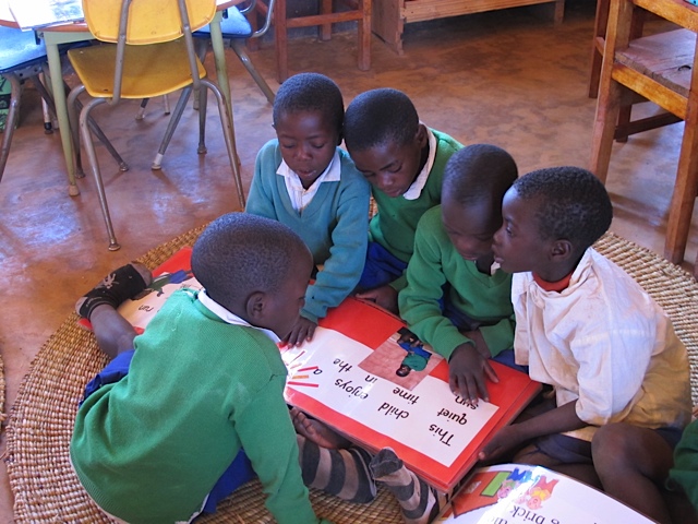 It’s endearing to see children pour over the stories, sounding words out and helping each other read the words. The big books contain simple English with lots of patterning. Hopefully they help them learn English.