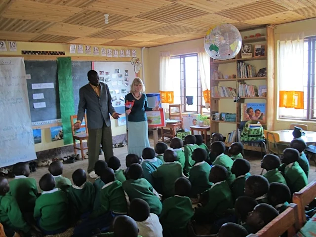 For six years my heavy suitcase bound for Tanzania has contained “big books.” It’s a harambee effort with dear friends of mine pulling together to help. Liz Priestman and I collect materials and ideas, adapting an existing tale to suit the Tanzanian setting or we producing something original. Elaine Olafson creates beautiful illustrations. For the past two years the books have been written in English and KiSwahili with the help of Lily Mbawala, a new Tanzanian friend living in Brentwood.